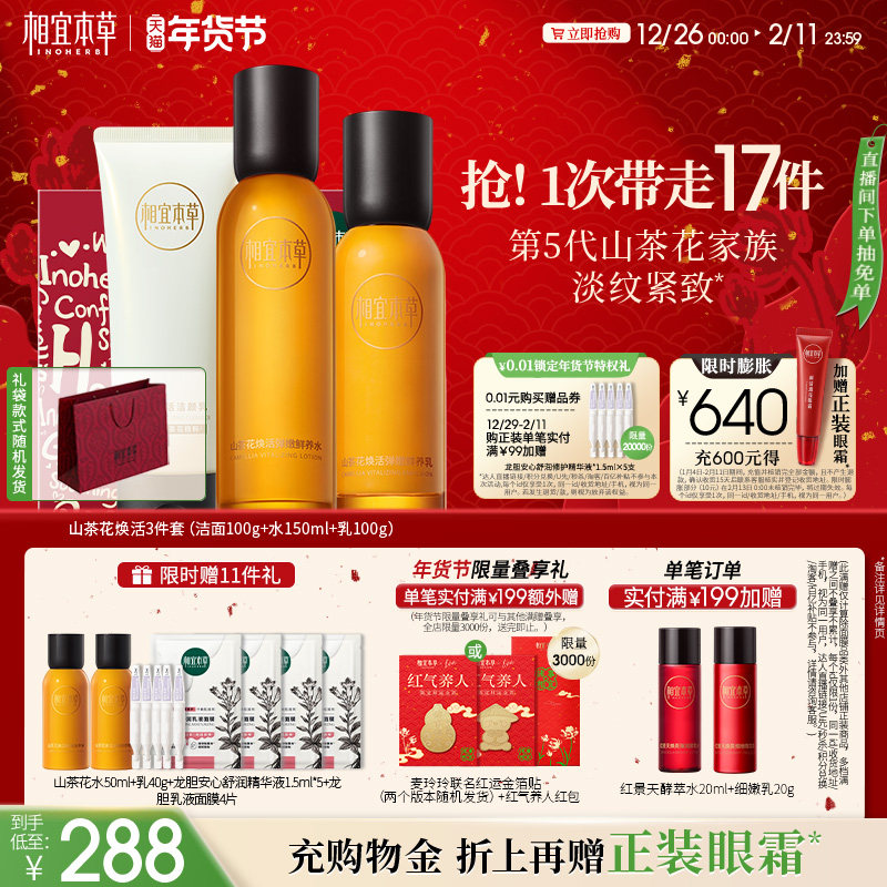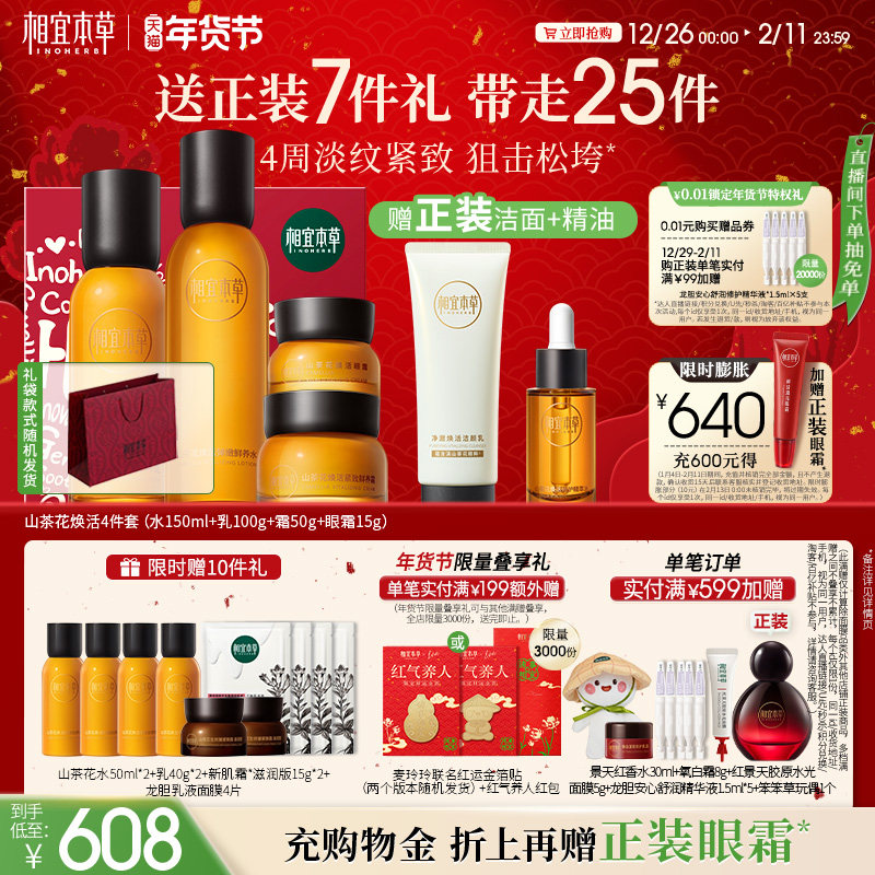 相宜本草山茶花套装水乳官方旗舰店正品紧致抗皱送妈妈化妆护肤品