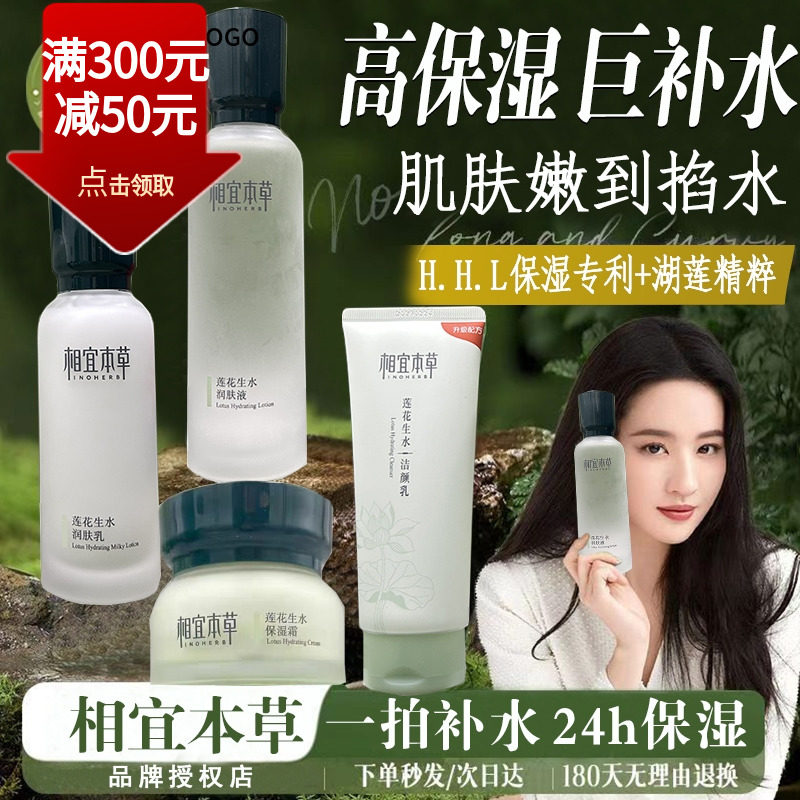 相宜本草水乳套装女莲花生水补水保湿护肤品化妆品官方旗舰店正品