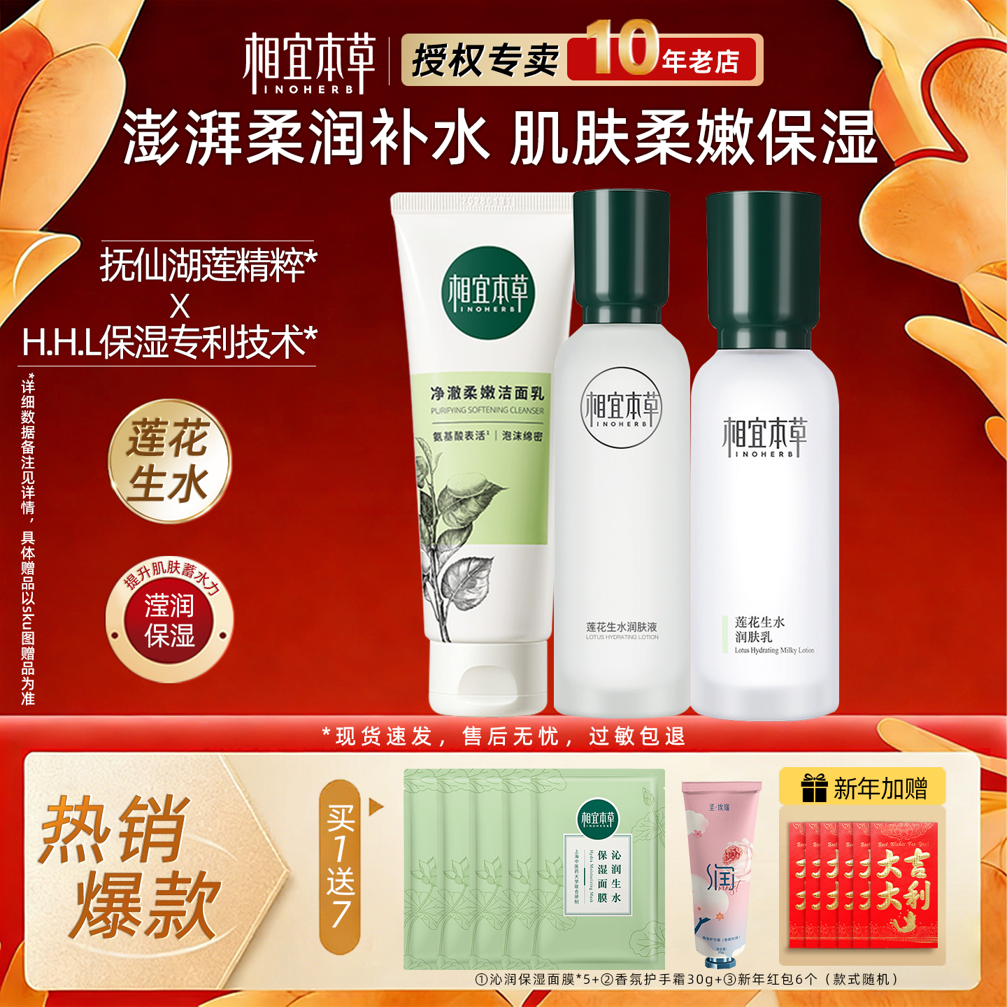 相宜本草水乳套装护肤莲花生水保湿补水化妆品全套官方旗舰店正品