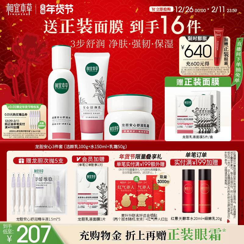 相宜本草官方旗舰店正品百合水乳套装保湿补水修护滋润护肤品学生