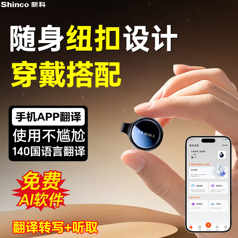 新科AI录音笔手环RV22商务降噪多国语言录音转文字连手机实时翻译