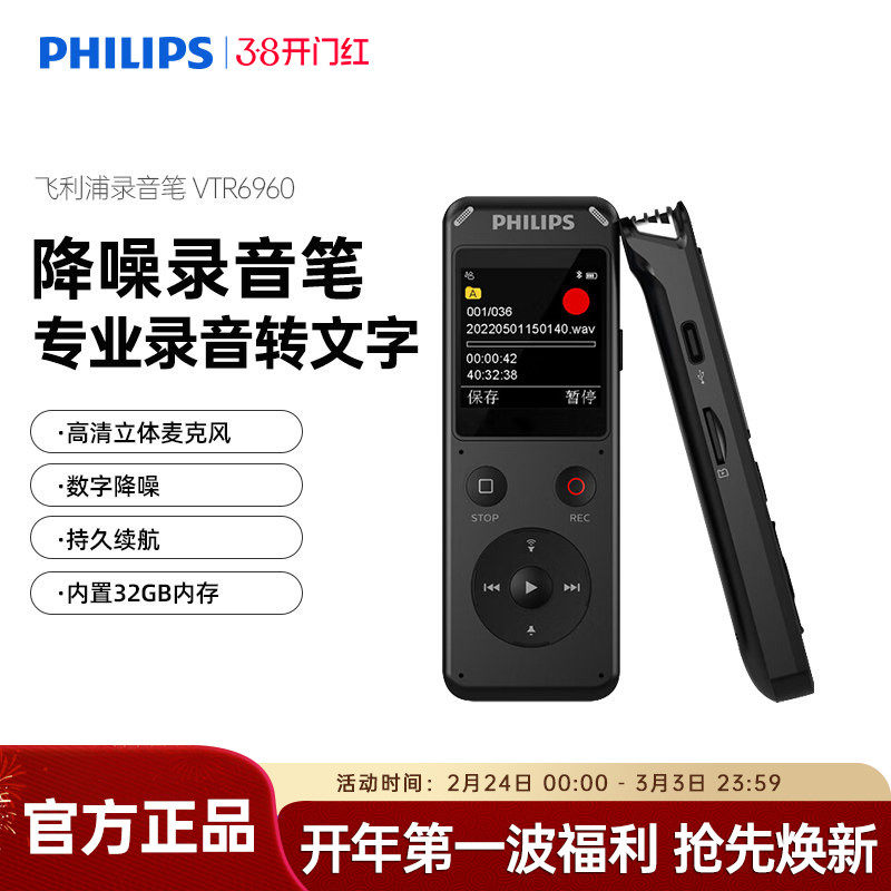 飞利浦录音笔VTR6960专业高清降噪外放学生上课用商务会议录音器