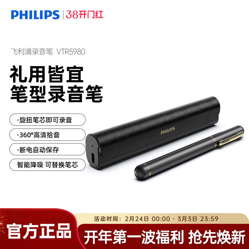 飞利浦VTR5980录音笔专业高清降噪语音转文字轻便小随身商务培训