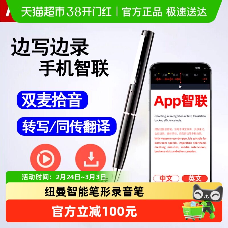 纽曼笔形录音笔高清降噪学生上课律师商务会议专用录音设备转文字