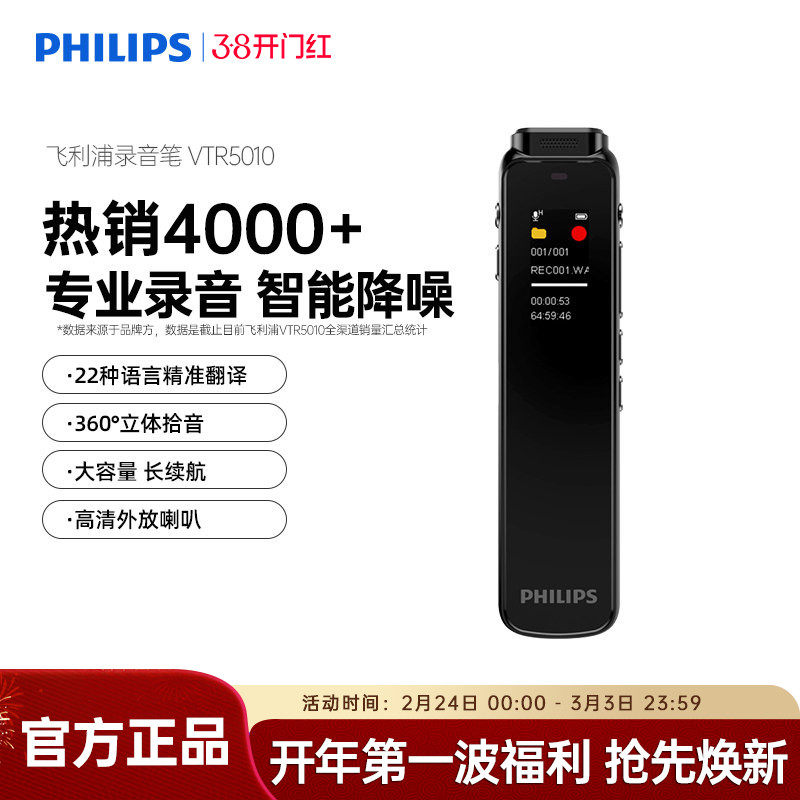 飞利浦录音笔VTR5010专业高清降噪学生上课用商务会议录音器设备