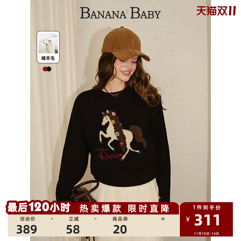 【绵羊毛】BANANA BABY2025年冬新款原创提花刺绣毛衫女套头减龄