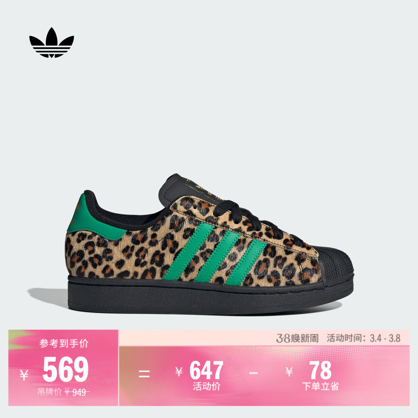 SUPERSTAR II W经典动物纹贝壳头板鞋女子adidas阿迪达斯三叶草