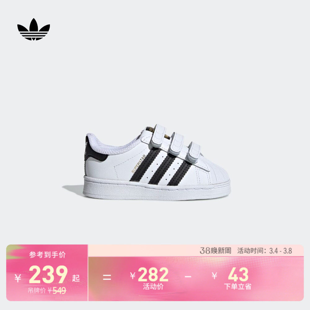 婴童SUPERSTAR经典魔术贴贝壳头运动板鞋adidas阿迪达斯三叶草