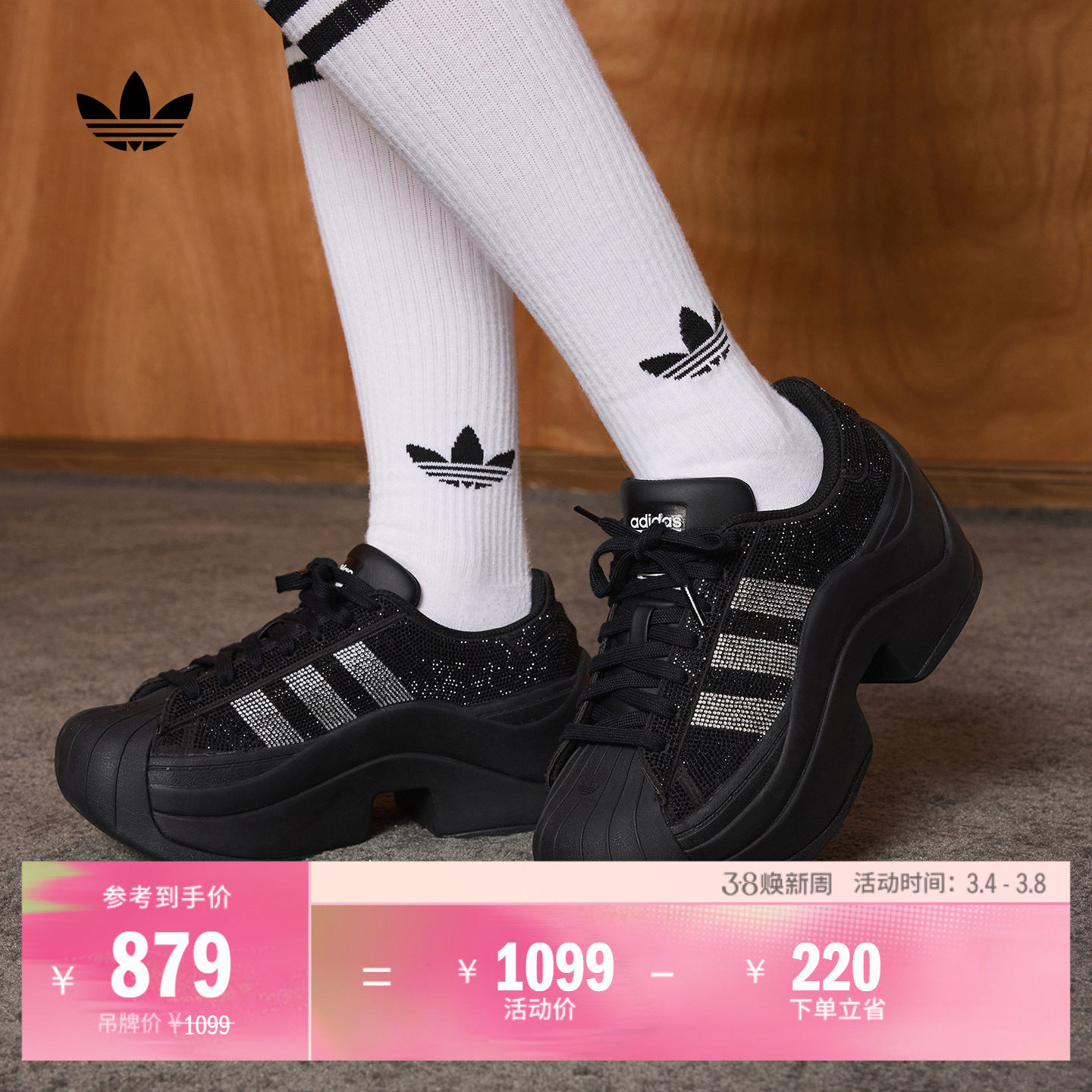 SUPERSTAR BOLD厚底闪钻贝壳头经典鞋女新款adidas阿迪达斯三叶草