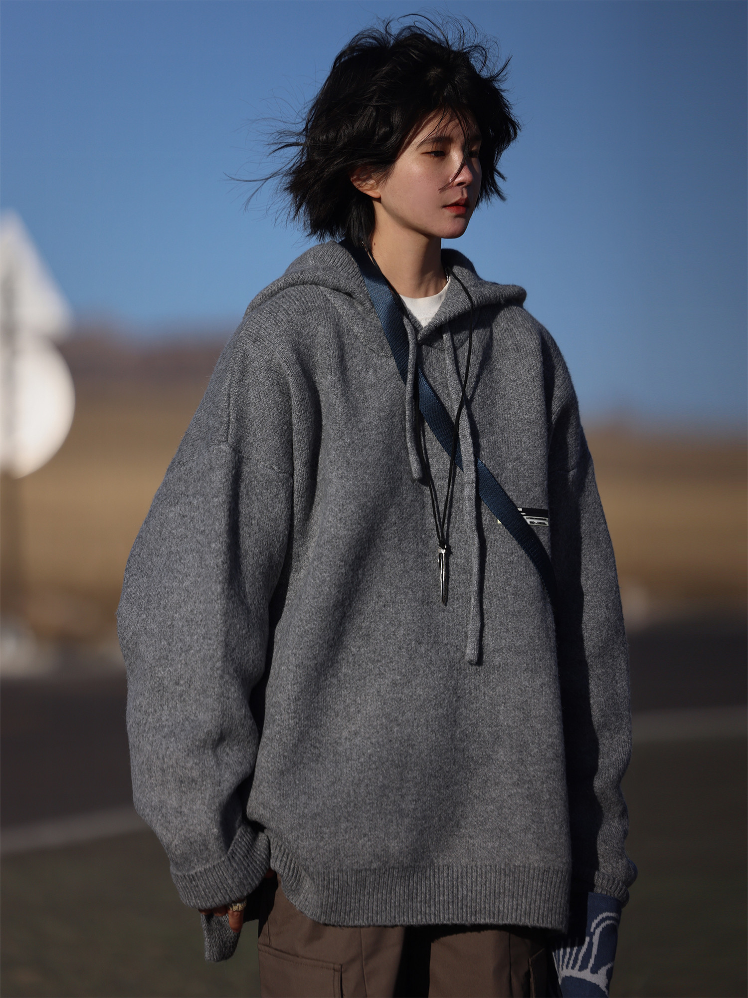 Dream made 慵懒风连帽套头毛衣男秋冬季老钱新贵情侣针织衫外套