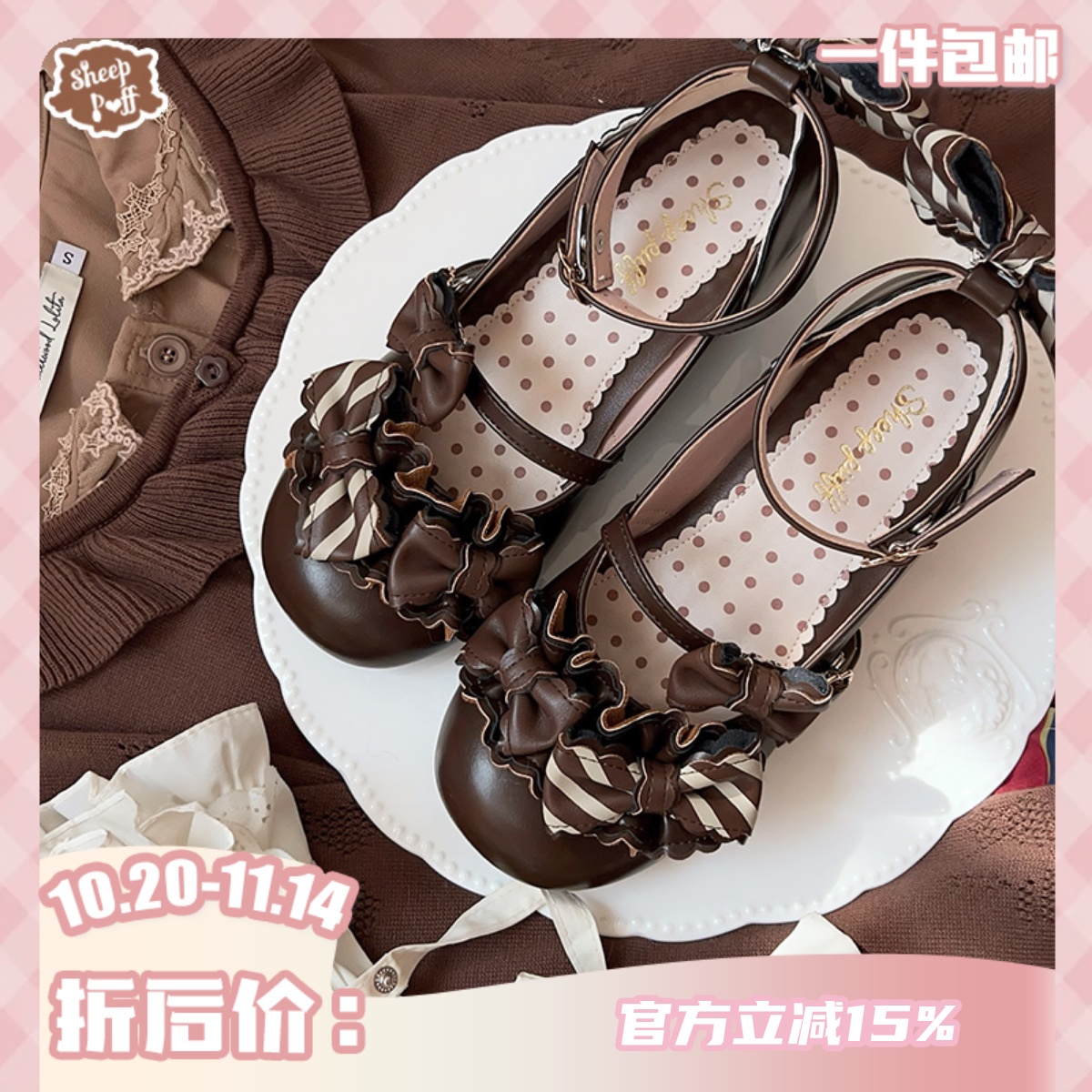 【现货】薄脆板巧 低跟绵羊泡芙Lolita巧克力甜美蝴蝶结低跟单鞋