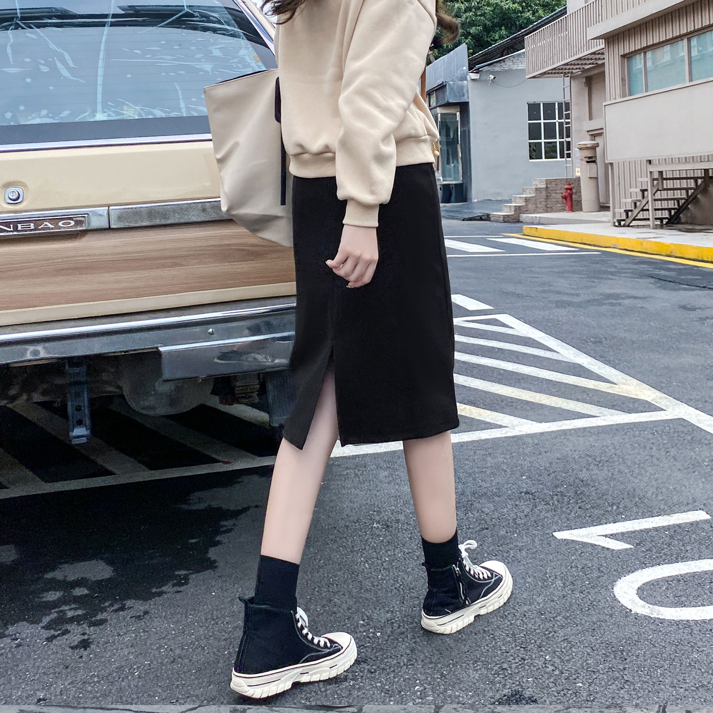毛呢半身裙女秋冬小个子中长款高腰开叉显瘦百搭包臀休闲直筒半裙