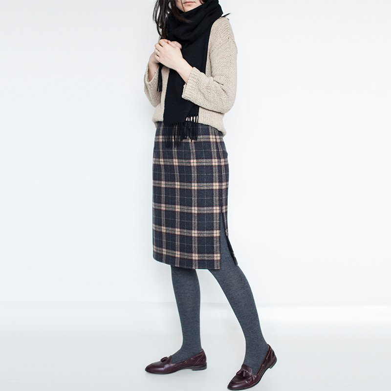 复古毛呢格子半身裙女高腰显瘦开叉直筒秋冬季加厚加绒包臀长裙子
