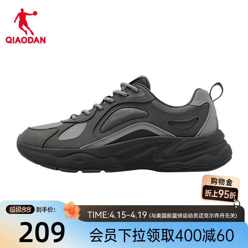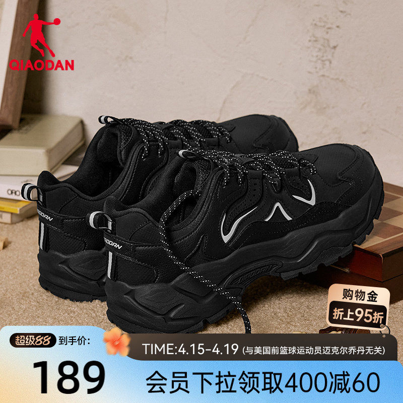 乔丹小千禧革面防水休闲鞋男2025冬季新款黑色老爹鞋厚底运动鞋子