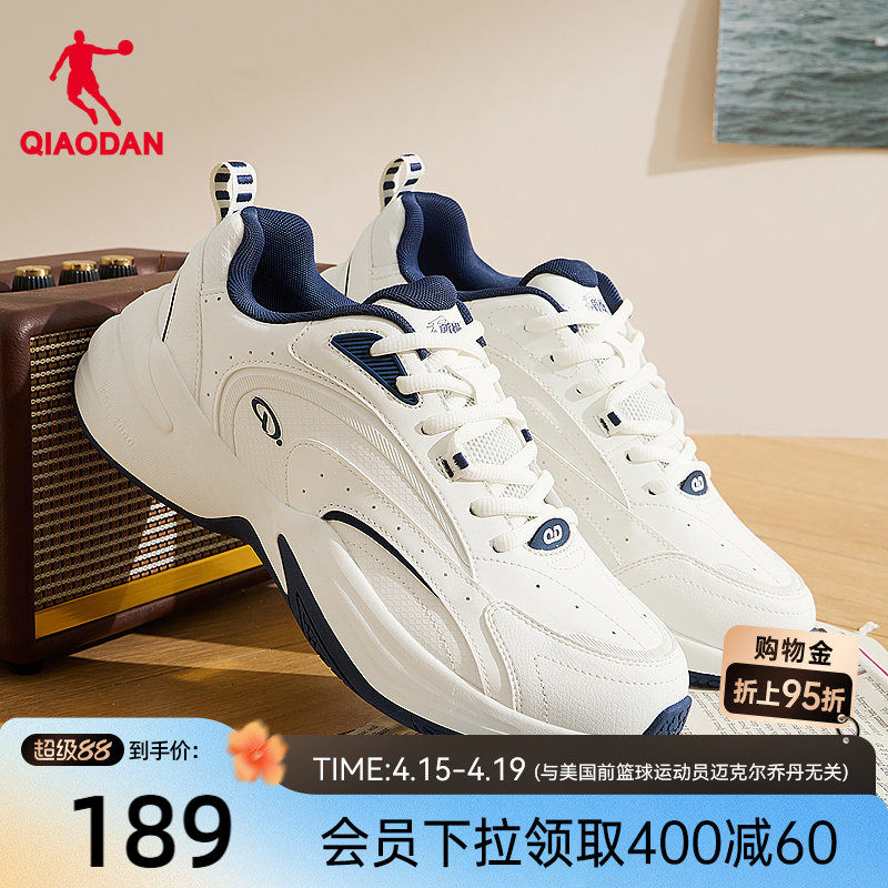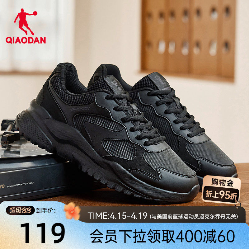 乔丹休闲鞋男鞋2025冬季革面防水运动鞋子软底回弹厚底黑色老爹鞋