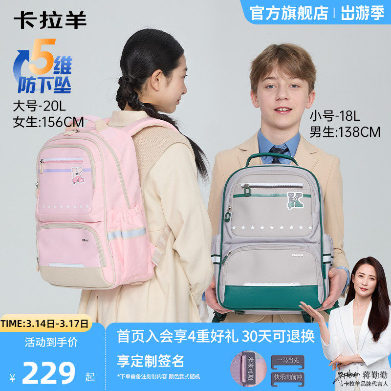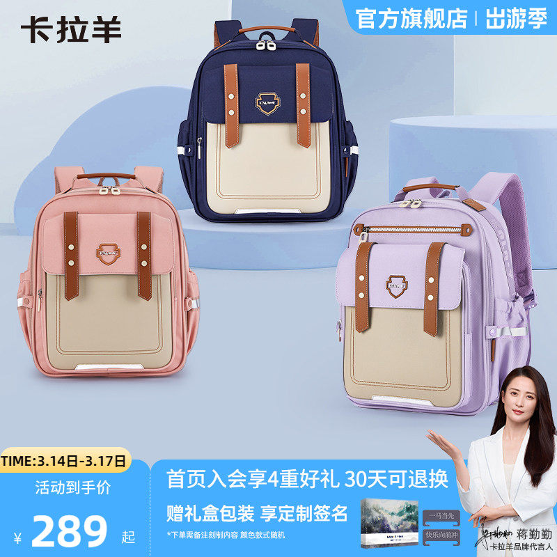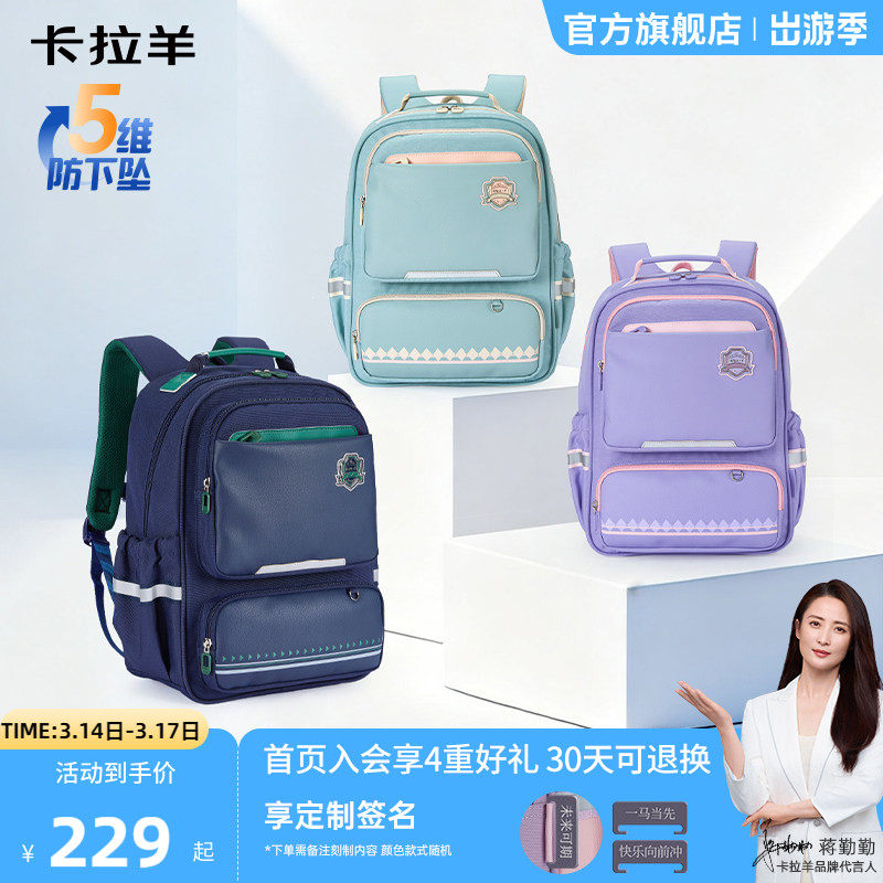 【直播加赠】卡拉羊3-6年级小学生书包减负护脊超轻儿童双肩包男女生初中生背包大容量高中生书包官方旗舰店