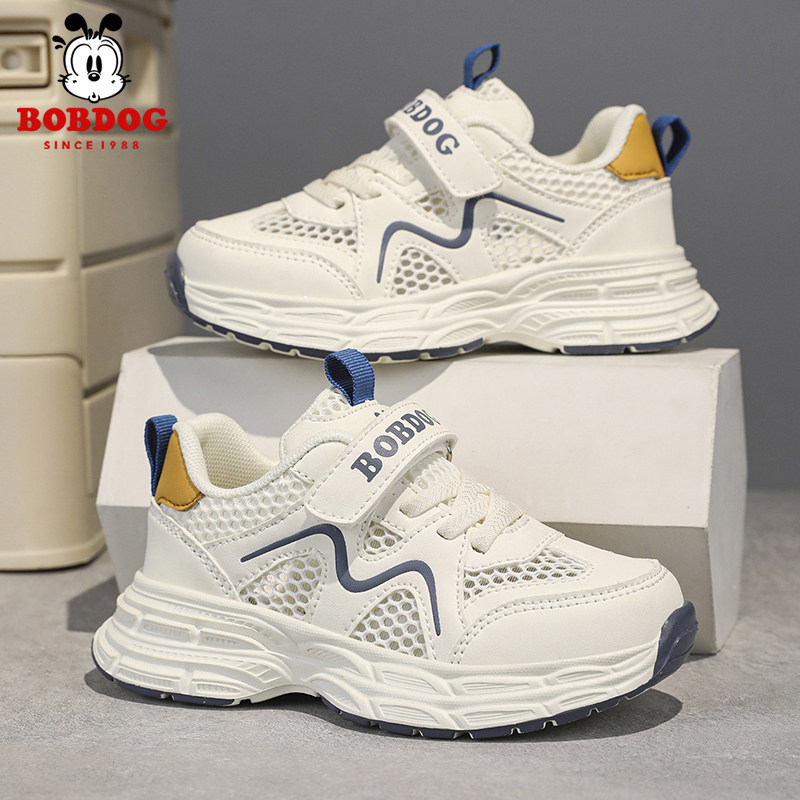 巴布豆童鞋2026年新款儿童魔术贴中大童跑步鞋网面透气男童运动鞋