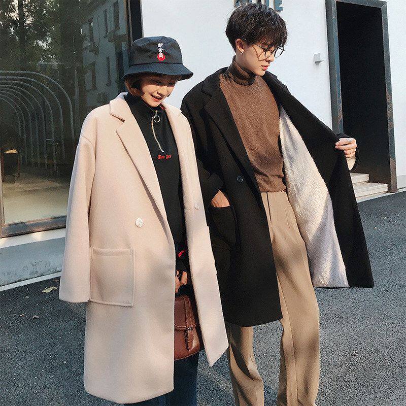 网林弯弯潮流呢大衣秋冬季红毛男女呢子外套风衣韩版中长款情侣装