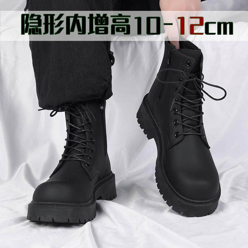 拉链款厚底机车靴子隐形内增高12cm10cm8cm林弯弯骑行真皮马丁靴