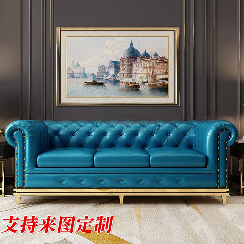 新款沙发 美式经典拉扣真皮沙发复古 KTV沙发椅三人位沙发可定制