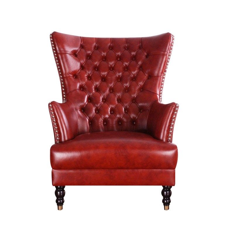 战神椅中古风茶室意式真皮沙发休闲椅子单人美式老虎椅北欧雪茄椅