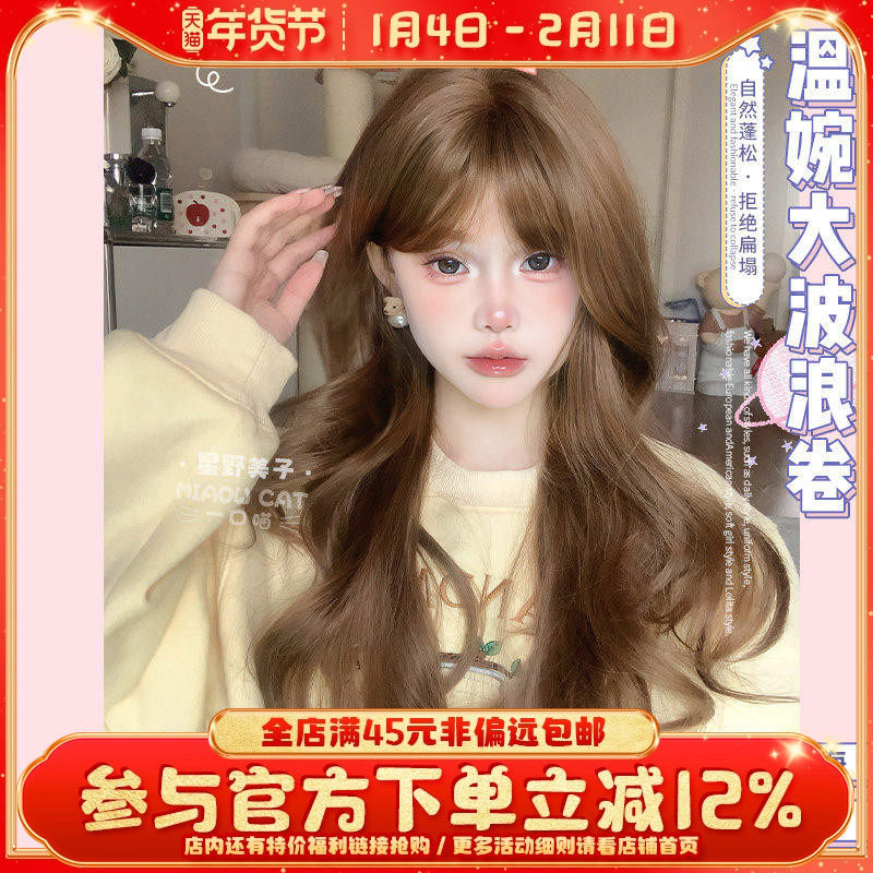 一口喵假发女日常网红长卷发自然新款逼真齐刘海全头套【奶酪酱】