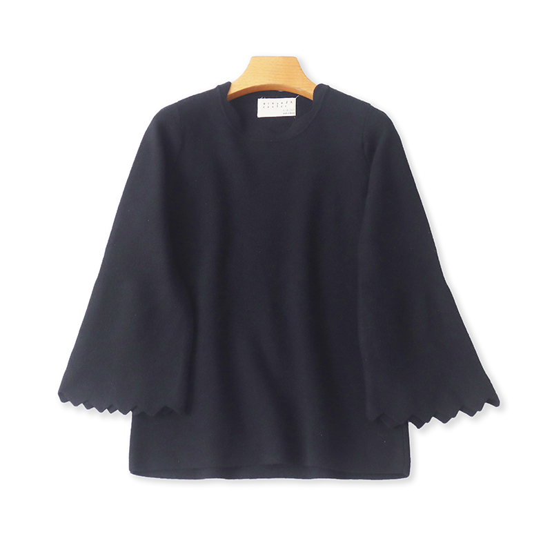 SIQIYOUNG 舒芙蕾马海毛混纺针织上衣 剪边下摆套头衫喇叭袖毛衣