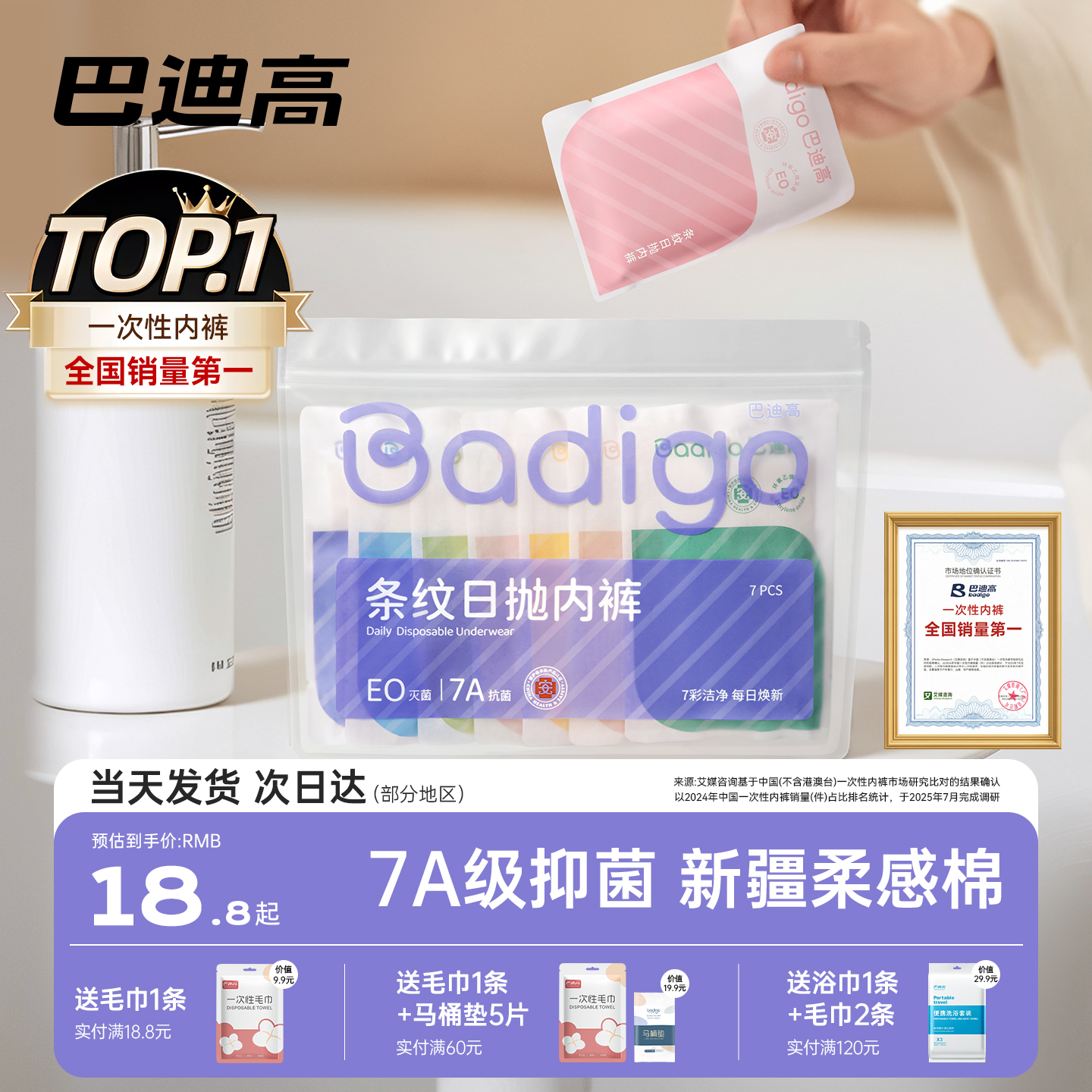 巴迪高一次性内裤女纯棉无菌旅行月子产妇月经三角便携免洗日抛裤