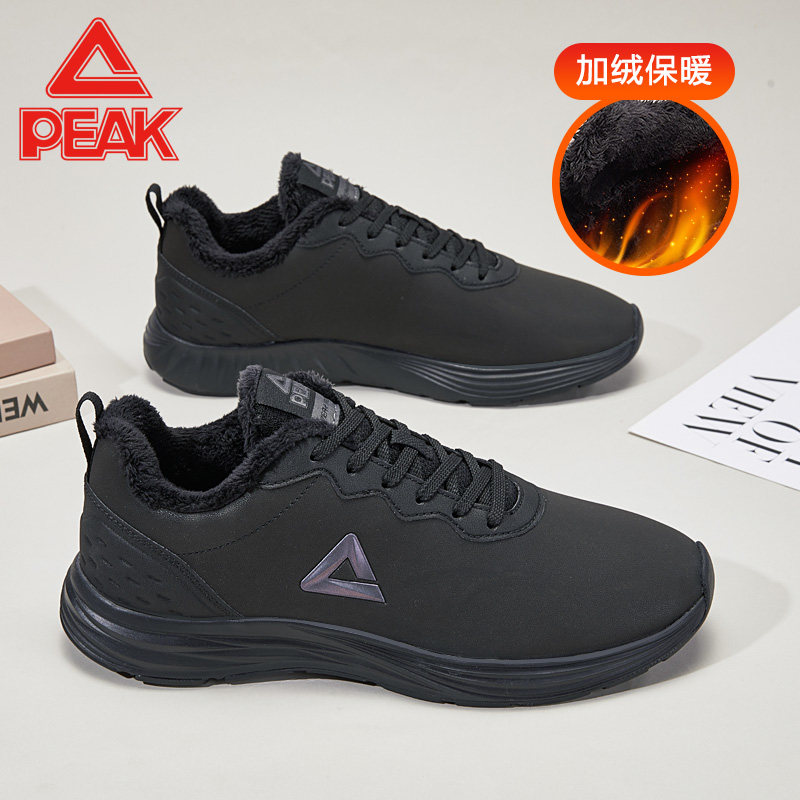 匹克男鞋黑色皮面保暖运动鞋男冬季2026新款通勤软底休闲跑步鞋子