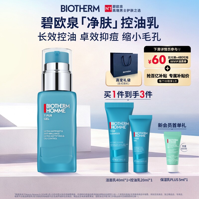 碧欧泉男士水动力三件套补水保湿清爽控油洗面奶护肤套装春夏水乳