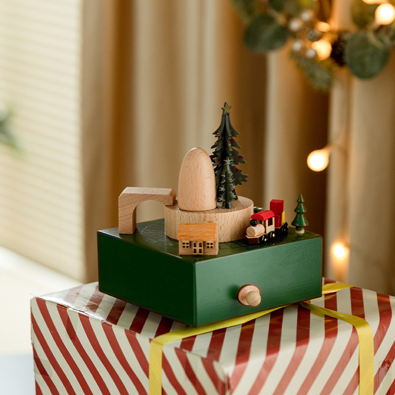 圣诞节八音盒可旋转小火车音乐盒木质女孩女生生日儿童圣诞树礼物