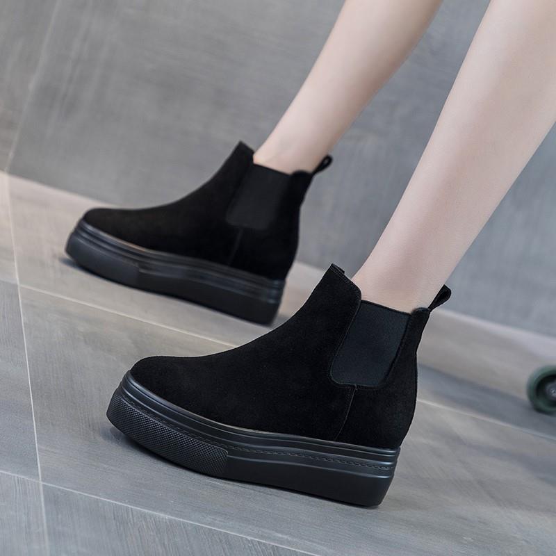 明星同款秋冬厚底松糕女鞋坡跟雪地靴内增高短靴英伦风马丁小个子