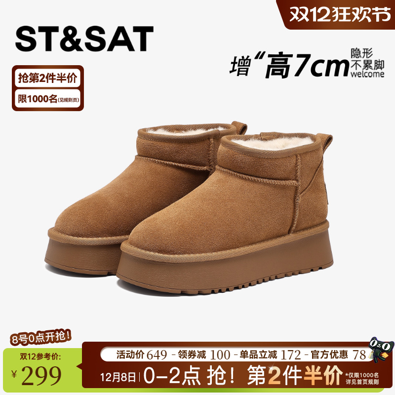 星期六雪地靴女增高百搭加绒加厚保暖内增高厚底棉鞋保暖冬季短靴