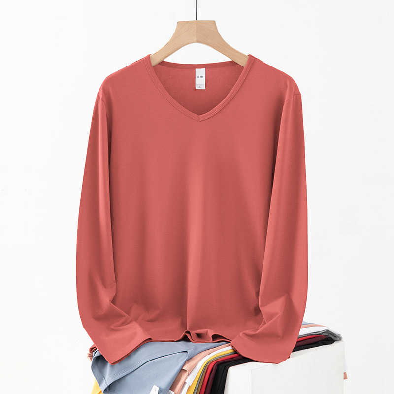 潮牌男士春秋莫代尔t恤男长袖v领修身打底衫韩版休闲百搭大码上衣