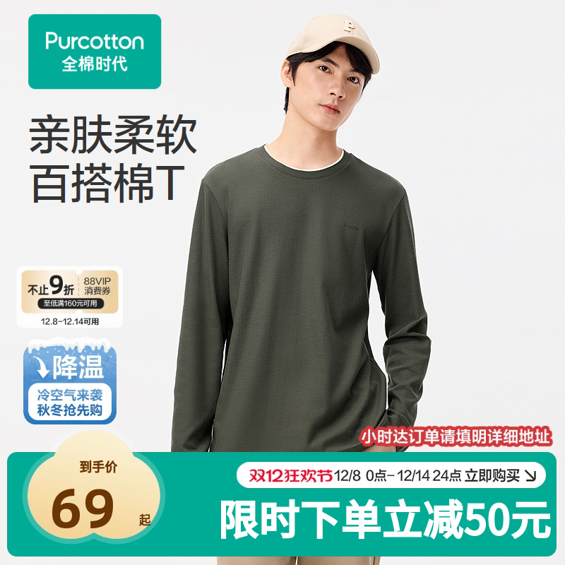 全棉时代男士长袖T恤衫t恤男长袖白色打底衫休闲圆领潮流针织内搭