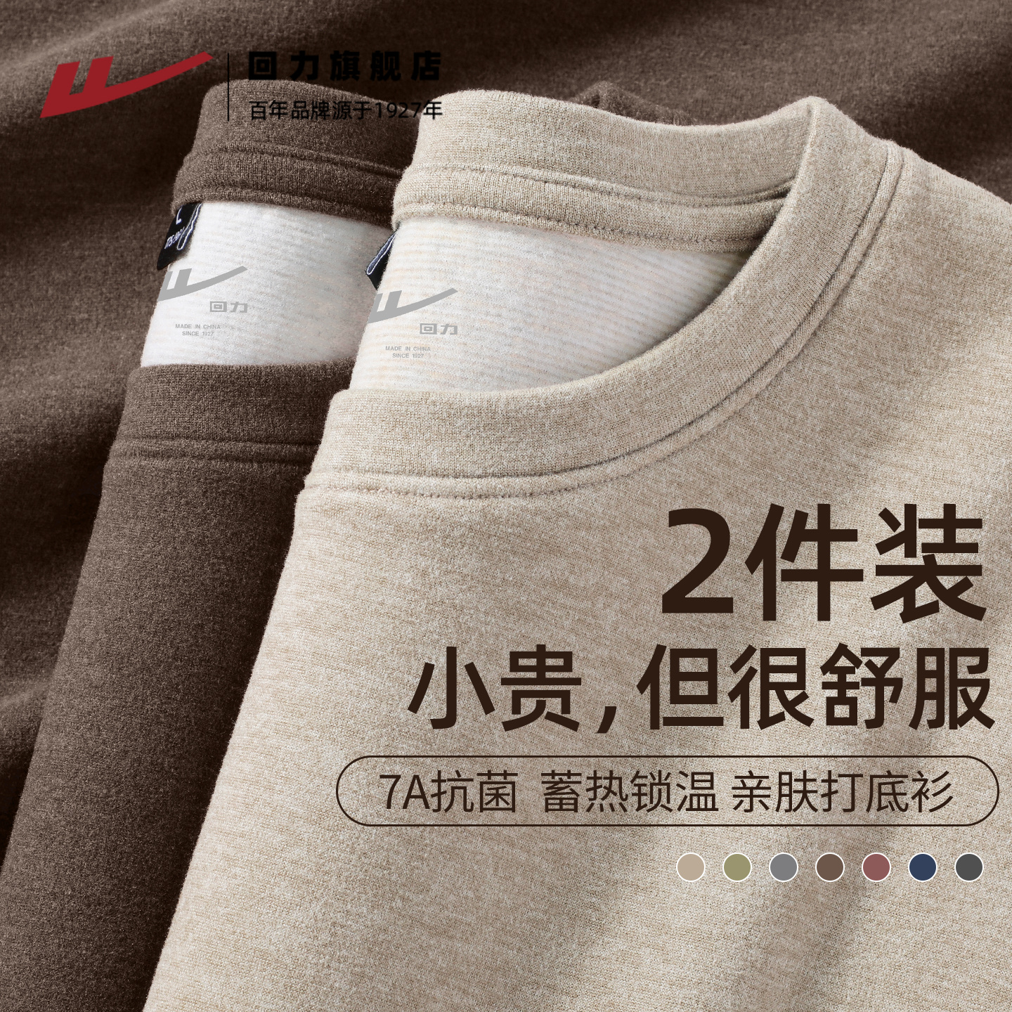 回力蚕丝羊毛绒t恤男长袖秋冬款防风保暖锁温打底衫男生圆领上衣A