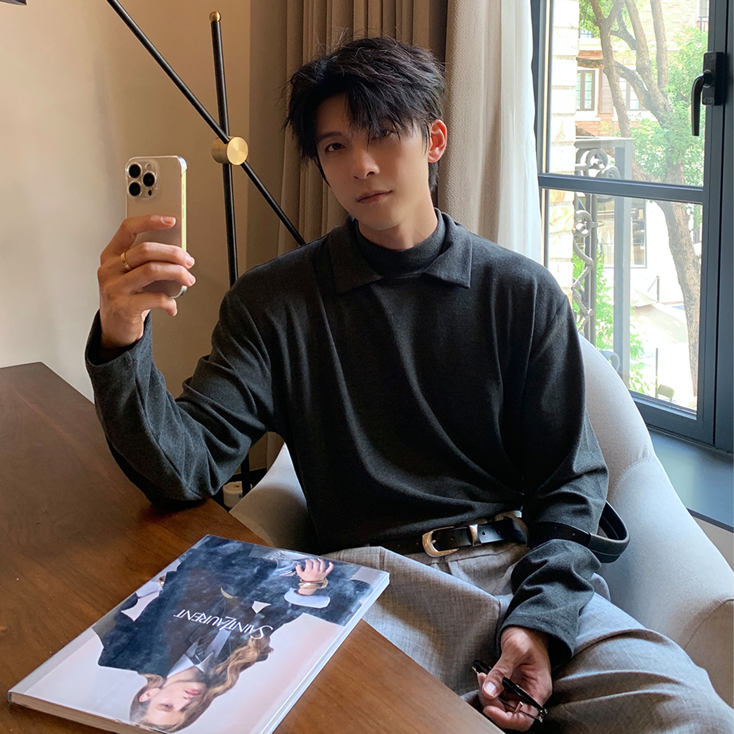 【慵懒打底衫】太平鸟男装 德绒长袖T恤冬季新款半高领纯色内搭男