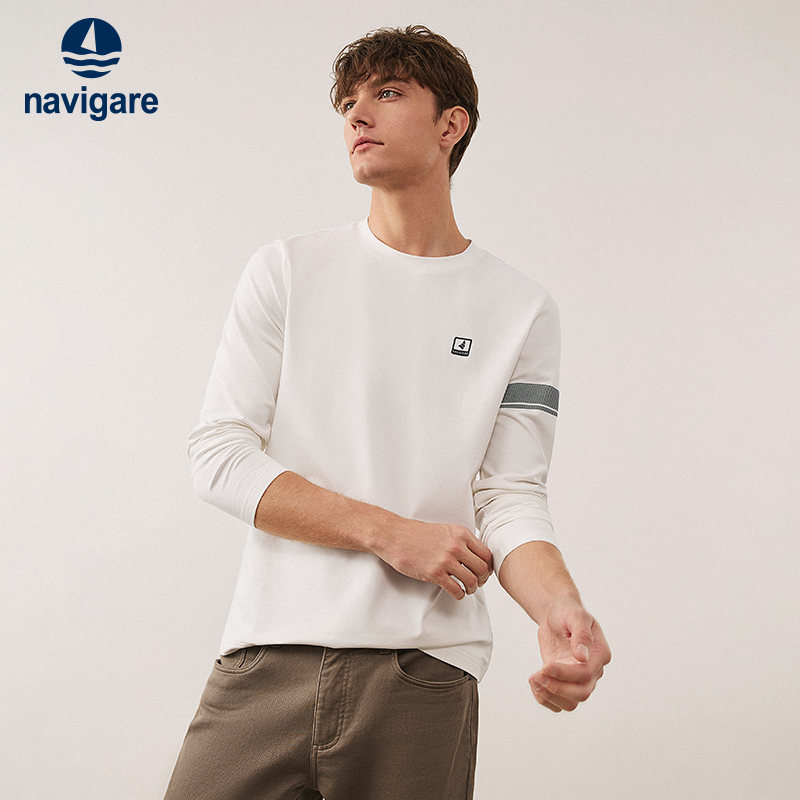 [磨毛]Navigare意大利小帆船秋季白色莫代尔t恤男长袖圆领体恤