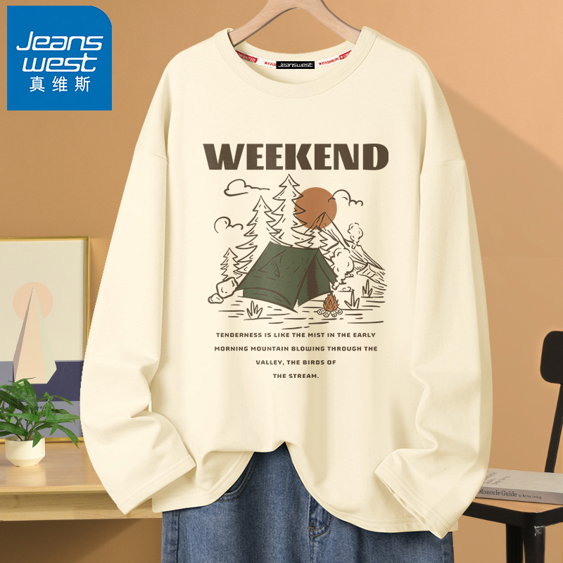 真维斯t恤男长袖2025新款纯棉秋季青少年春秋款宽松初中生上衣男