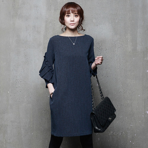 一字领荷叶边连衣裙[第2名]
