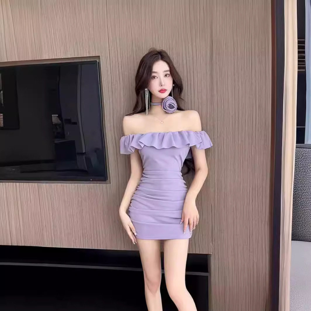 2025夏季新款性感连衣裙女荷叶边一字领抹胸甜辣小个子包臀短裙子