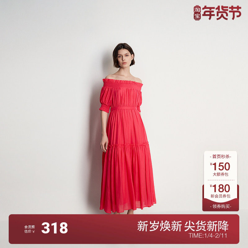 一字领荷叶边连衣裙相关商品