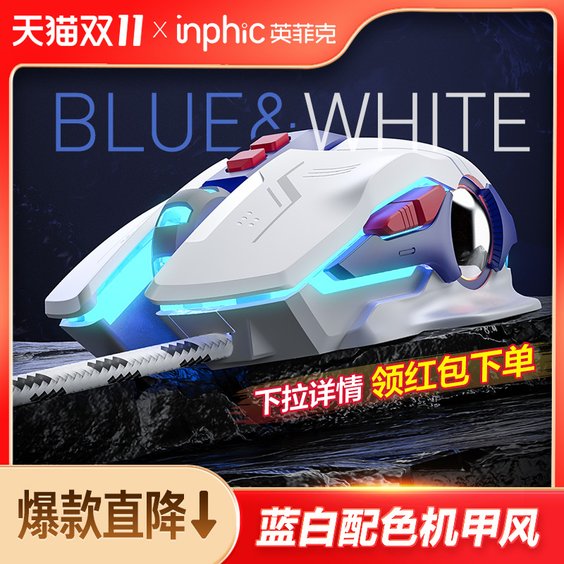 英菲克W9P鼠标有线机甲版宏编程电竞机械游戏静音无声电脑办公usb