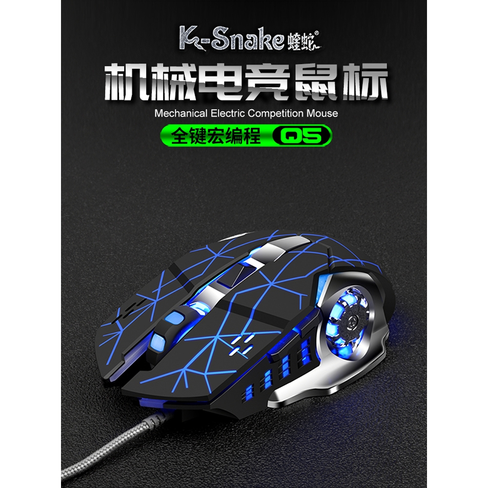 狼蛛送垫有线无声鼠标静音笔记电脑台式游戏网吧金属机械电竞通用