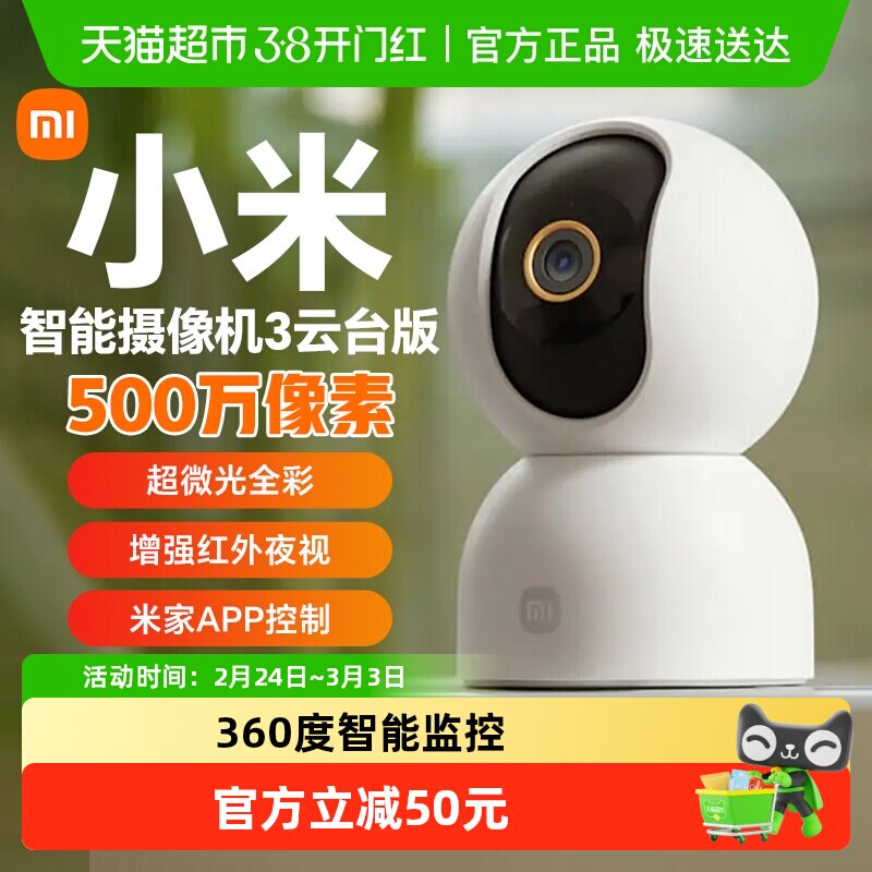 小米智能摄像机3云台版超高清家用远程无线手机监控360全景摄像头
