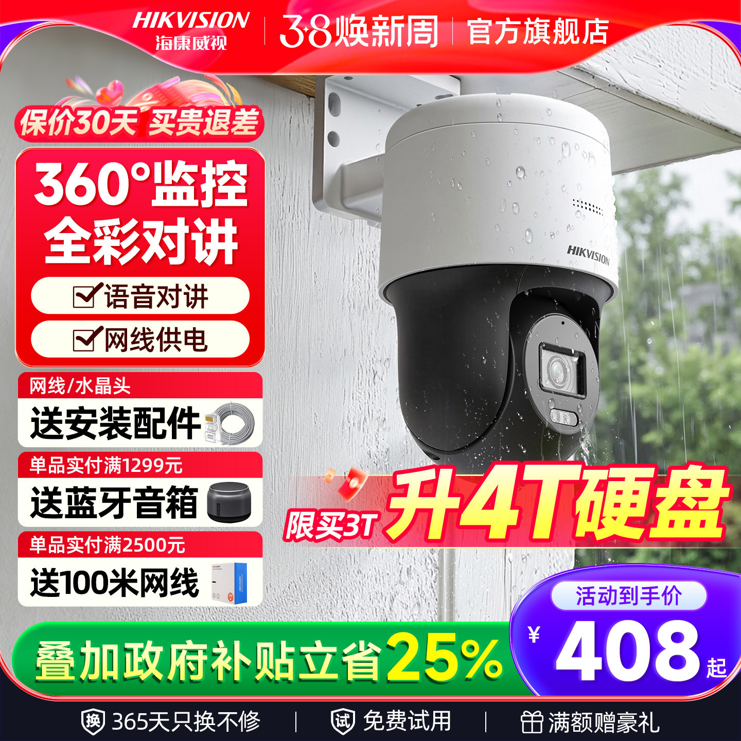 海康威视监控器套装手机远程室外高清夜视360度无死角全景摄像头