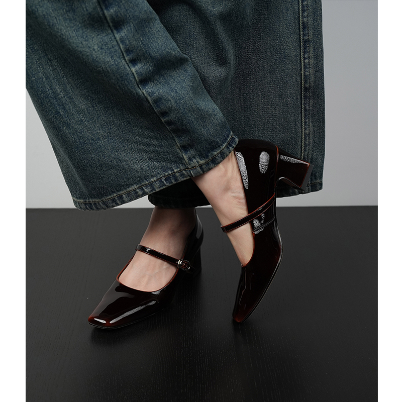 Fermina小方头浅口玛丽珍鞋女高跟鞋一字带粗跟单鞋通勤风四季鞋