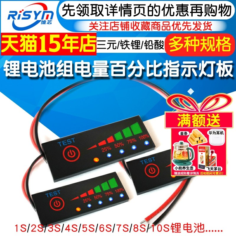 三元/铁锂/铅酸电瓶电量显示器 电量百分比指示灯板 电动车电量表