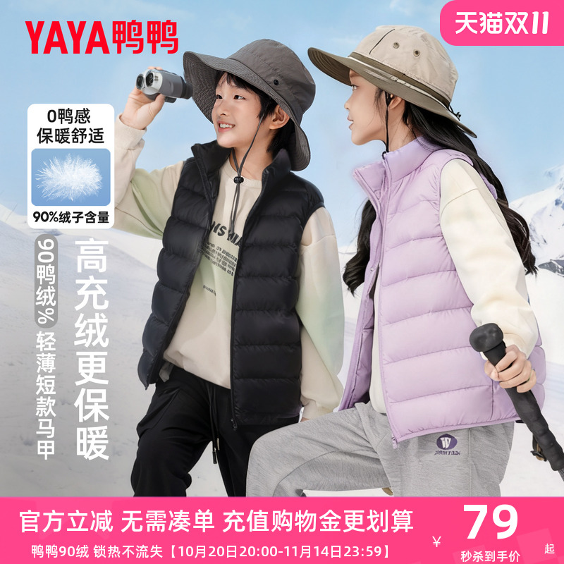 雅鹿儿童羽绒马甲外穿秋冬背心男童女童宝宝轻薄羽绒服内胆青少年