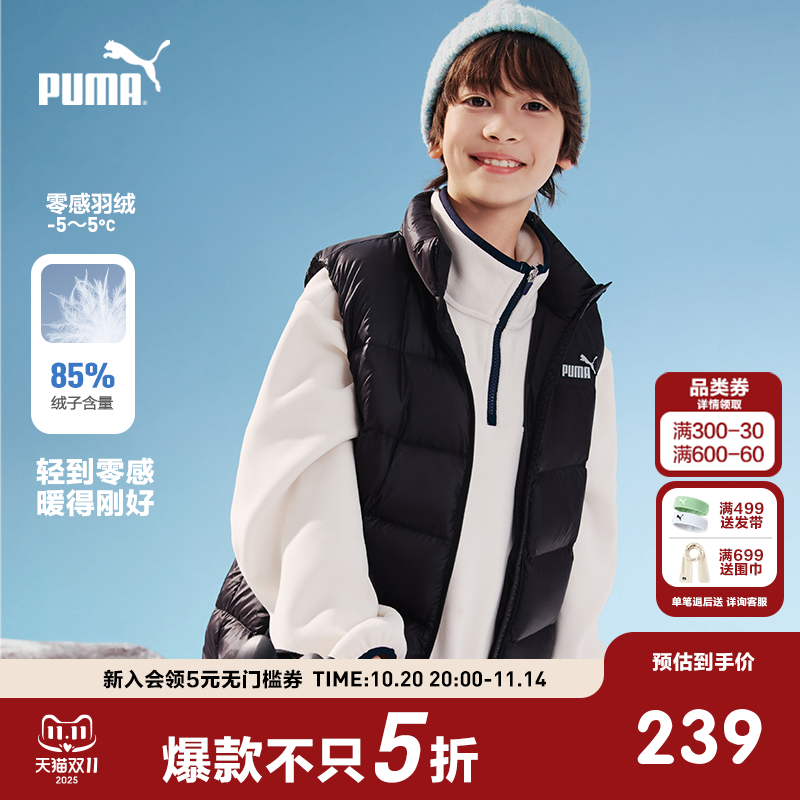 PUMA彪马童装冬季新款儿童羽绒服洋气羽绒马甲轻量保暖拉链外套
